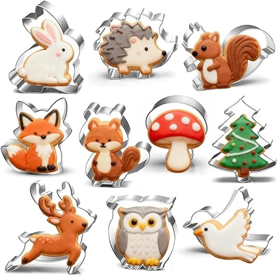 Material & Verarbeitung: Lebensmittelechter Edelstahl, gebürstete, langlebige Oberfläche.Set-Zusammensetzung & Formenvielfalt: Zehn süße Formen, Waldtiere-Thema.