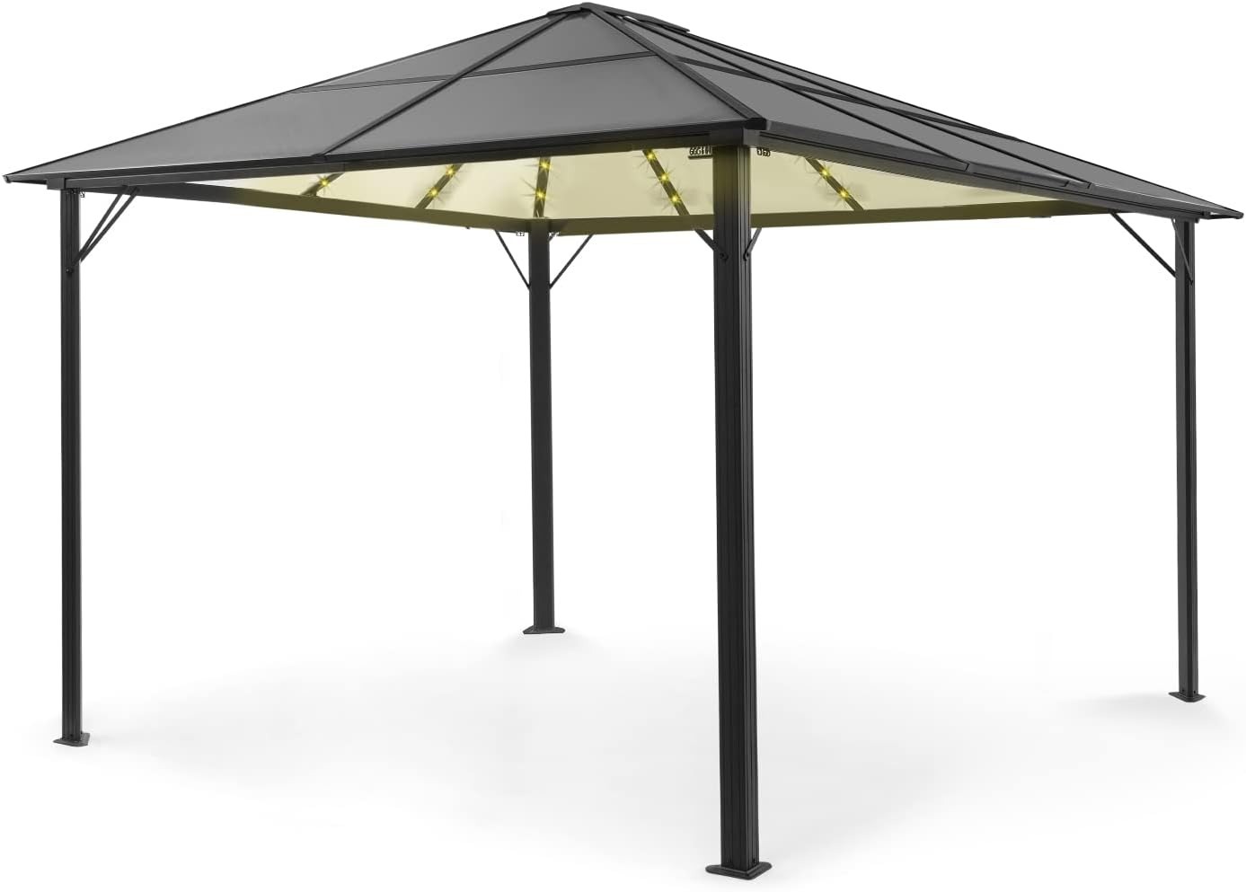 Material & Konstruktion: Rostfreies Aluminium, witterungsbeständiger Polyesterstoff.Größe & Design: Großer 3 x 3,65m Gartenpavillon.