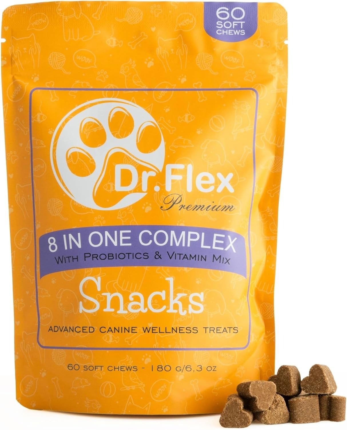 Art des Supplements & Einsatzbereich: Wirken als 8-in-1 Soft-Chew Snack.Hauptwirkstoffe & Nährstoffprofil: Enthalten Probiotika, Vitamine und Lachsöl.