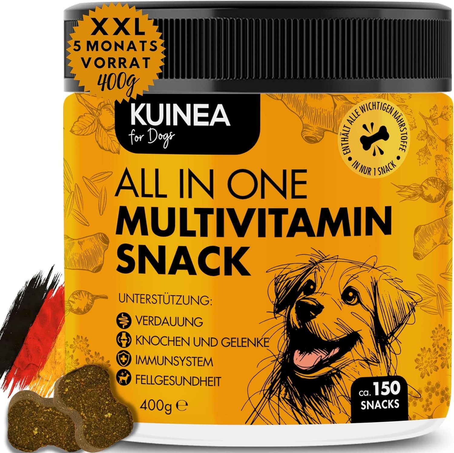 Art des Supplements & Einsatzbereich: Dienen als Leckerlis zur Vorsorge.Hauptwirkstoffe & Nährstoffprofil: Fördern Gelenke, Immunsystem und Verdauung.