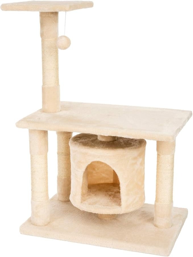 Materialien & Verarbeitungsqualität: Hergestellt aus langlebigen Spanplatten, mit weichem Fleece bezogen für Komfort und mit natürlichem Sisal umwickelt, um den Kratzinstinkt zu befriedigen.