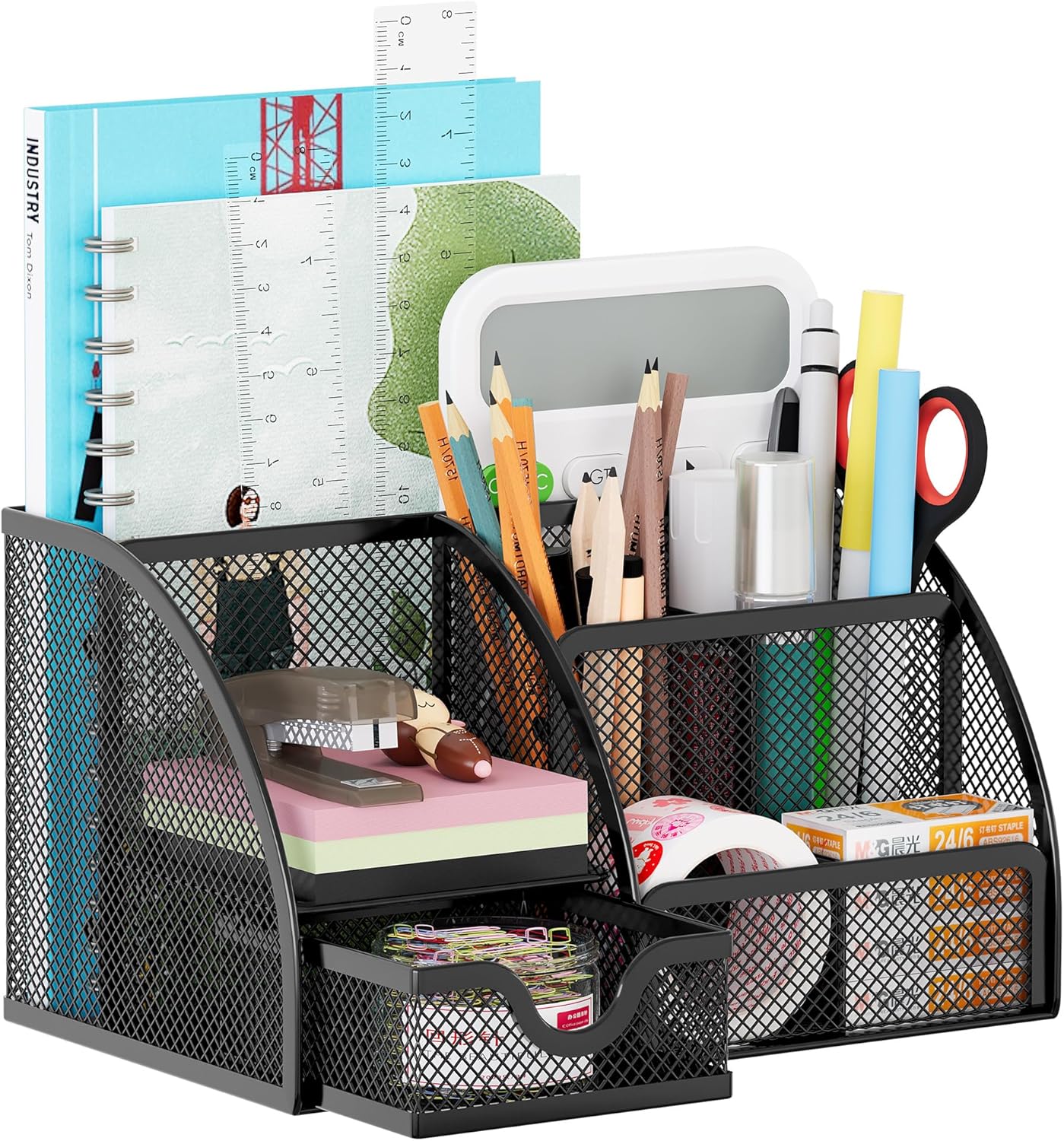 Aufbau & Fächerstruktur: Kombiniert Stifthalter, Ablagen und Schubladen, um kleine Büroutensilien perfekt zu organisieren.